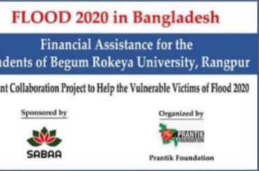 Millions of underprivileged people in rural areas of Bangladesh became the victim of devastating flood which impacted their health, economy, and daily livelihood. To help flood victims of many parts of Bangladesh such as Kurigram, Sirajgonj, Ponchoor, Dinajpur, Gaibandha, Chandpur, and other locations; SABAA delivered and distributed dry food, drinking water, and cash for more than 400 needy families in July.
